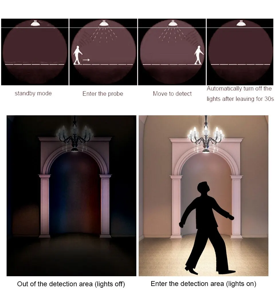Adecuado para iluminación automática de pasillos, pasillos, baños, sótanos, almacenes, garajes, armarios, cajas de luz publicitarias y otros lugares.