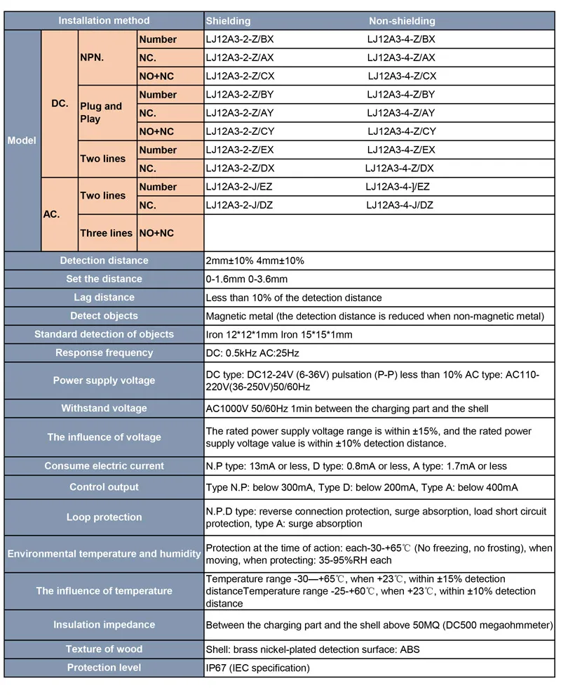 2 uds interruptor de proximidad LJ12A3-4-Z/BX tres cables NPN/PNP NO M12 Sensor de corte de alambre 6-36V LJ12A3-4-Z/BY