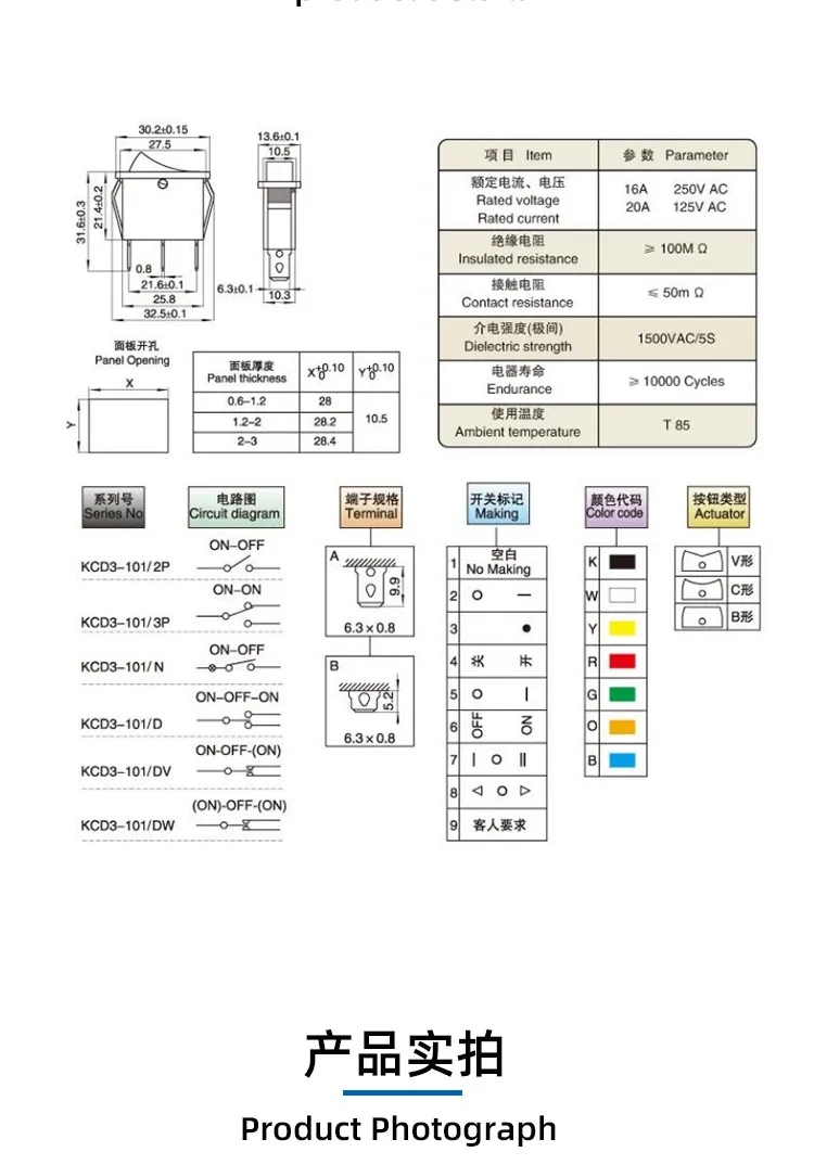 Comprar 2 uds KCD3 con interruptor de alimentación de luz 10A 250V AC 15A 125V AC 2/3 Pin SPDT KCD3 ON-OFF-ON 2/3 posiciones interruptor basculante para barco