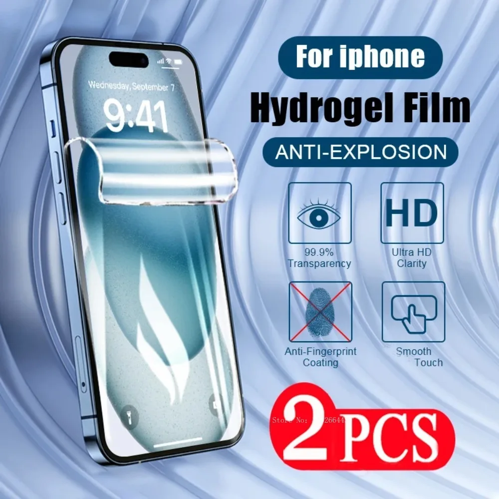 Comprar 2 uds no de vidrio 16 15 14 Pro Max 11 XR XS hidrogel para Iphone 12 13 Mini Protector de pantalla de teléfono película protectora