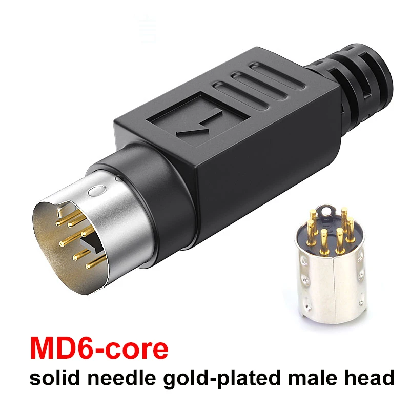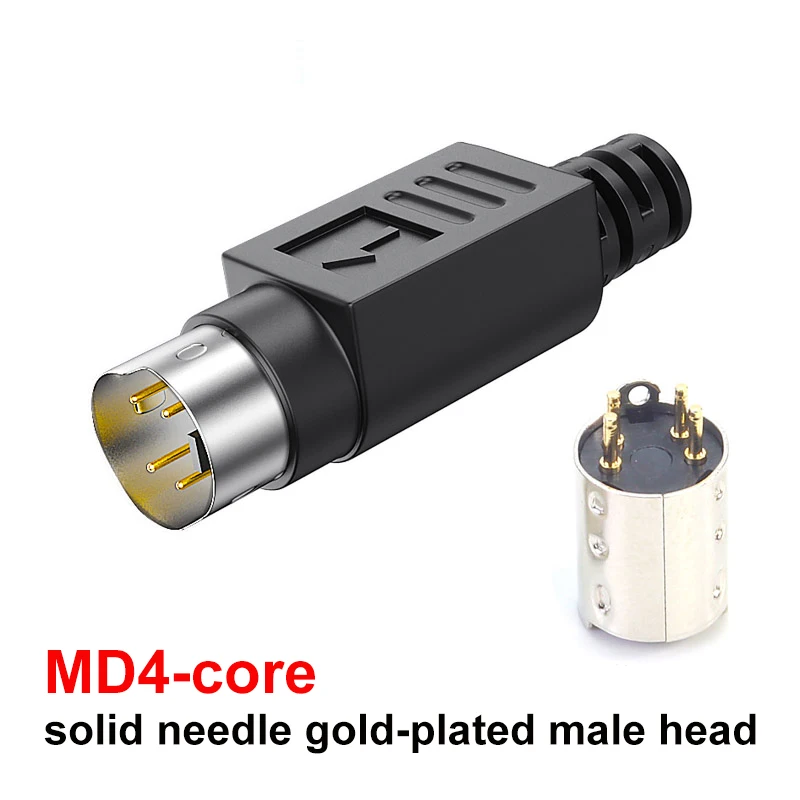 Nombre del producto: cabeza macho chapada en oro con aguja sólida MD de 8/6/4 núcleos + carcasa de plástico semicircular