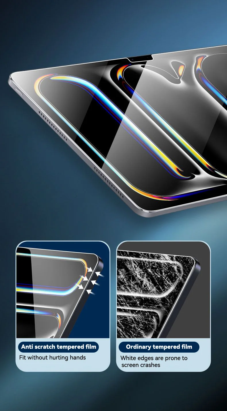 *DISEÑO ESPECIALIZADO:Diseñado específicamente para la tableta iPad Air/Pro de 11 pulgadas/13 pulgadas 2024, este protector de pantalla de vidrio templado brinda protección adicional contra rayones, caídas y otras formas comunes de daños.