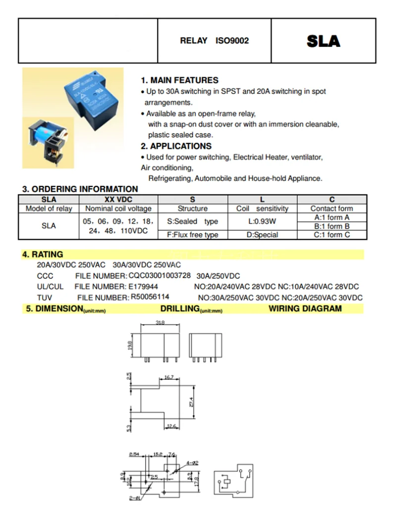 Comprar 2 uds relés de potencia SLA-05VDC-SL-C SLA-12VDC-SL-C SLA-24VDC-SL-C 5V 12V 24V 30A 6PIN T90 nuevo y Original