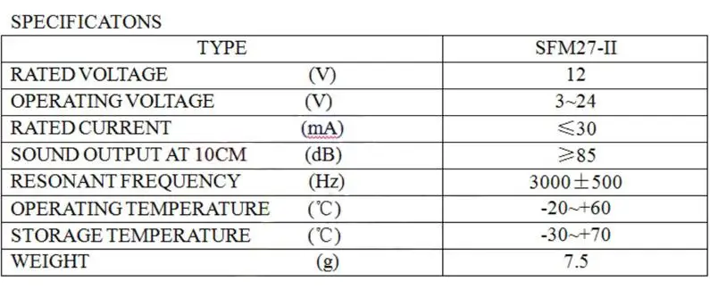 2 uds SFM-27 DC 3-24V alto decibelio zumbador electrónico alarma altavoz sonido intermitente pitido DIY blanco para Arduino