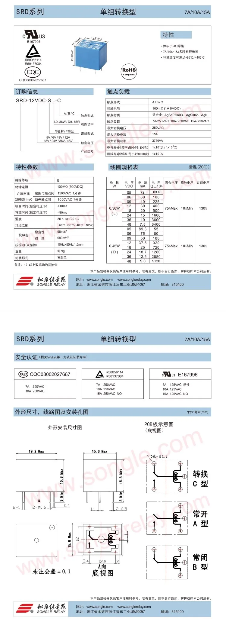 2 uds SRD-05VDC-SL-A SRD-05VDC-SL-C SRD-12VDC-SL-A SRD-24VDC-SL-A SRD-48VDC-SL-A SRD-12VDC-SL-C 03V 05V 12V 24V 48VDC 4 pines 5 pines