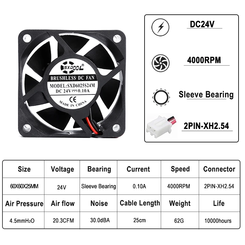 Comprar 2 uds SXDOOL ventilador silencioso 24v dc 60mm 60X60X25mm rodamiento de manga 24V 0.10A pc cpu ventilador de refrigeración 6025 ventilador enfriador de refrigeración