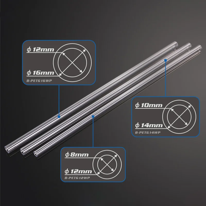 2 uds tubo rígido tubo duro PETG tubo de agua acrílico 500MM para construcción de tuberías de refrigeración por agua OD 16/14/12MM