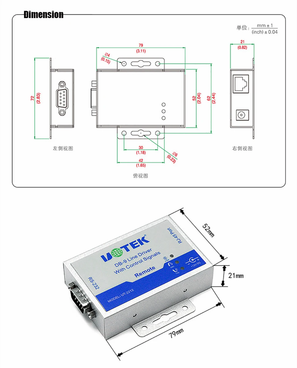 Comprar 2 uds UOTEK grado Industrial RS-232 convertidor de controlador de extensión serie adaptador RS232 UT-2212 conector extensor de larga distancia