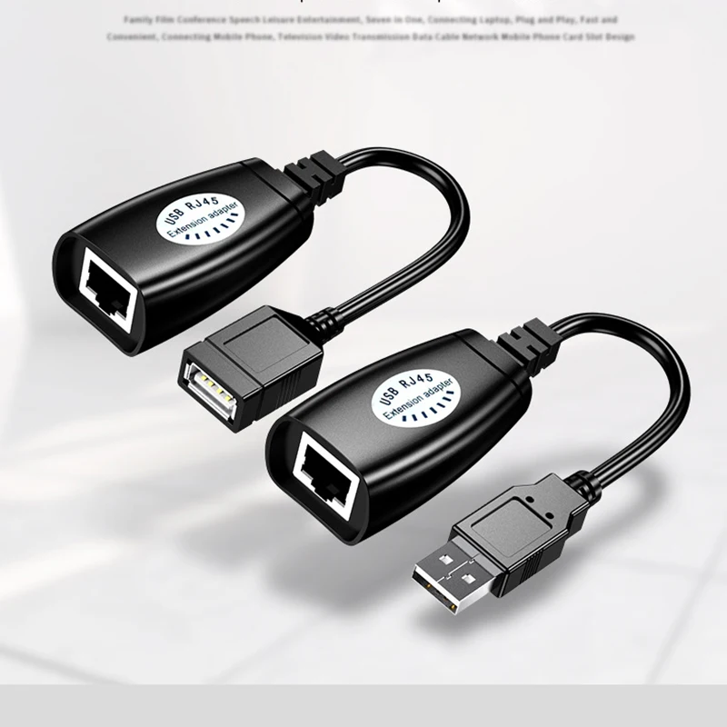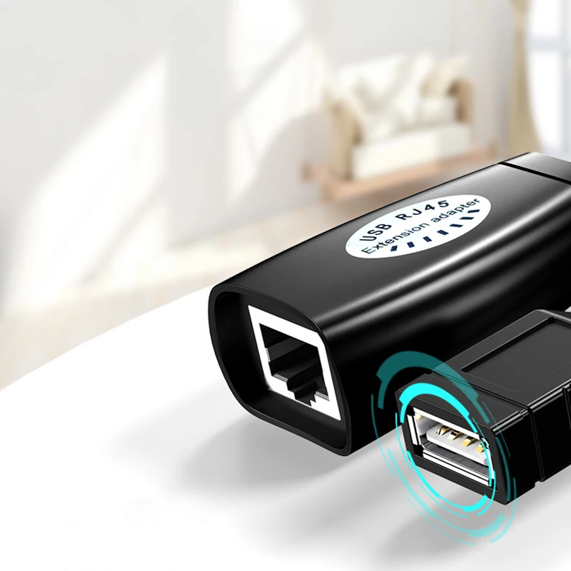 2.Extienda el adaptador para el puerto RJ45, conecte el dispositivo USB2.0, alcance la transmisión de datos de larga distancia de 150 pies, no necesita chip IC adicional, más estable
