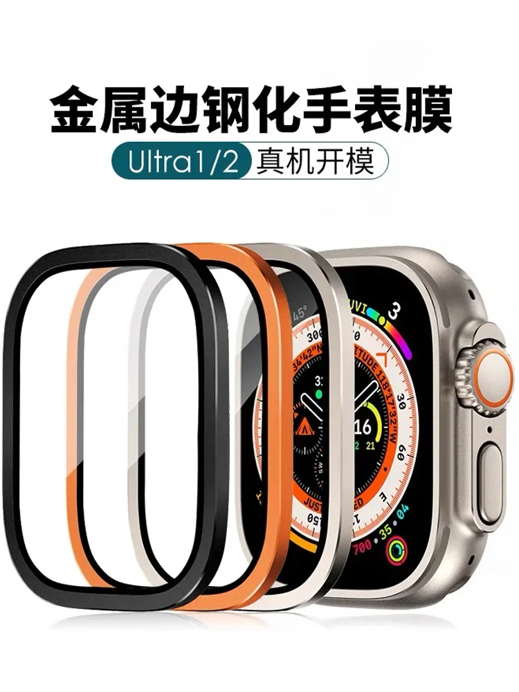 2 uds vidrio templado para Apple Watch Ultra 49mm marco de Metal de titanio película antiarañazos Serie Ultra 2 accesorios protectores de pantalla