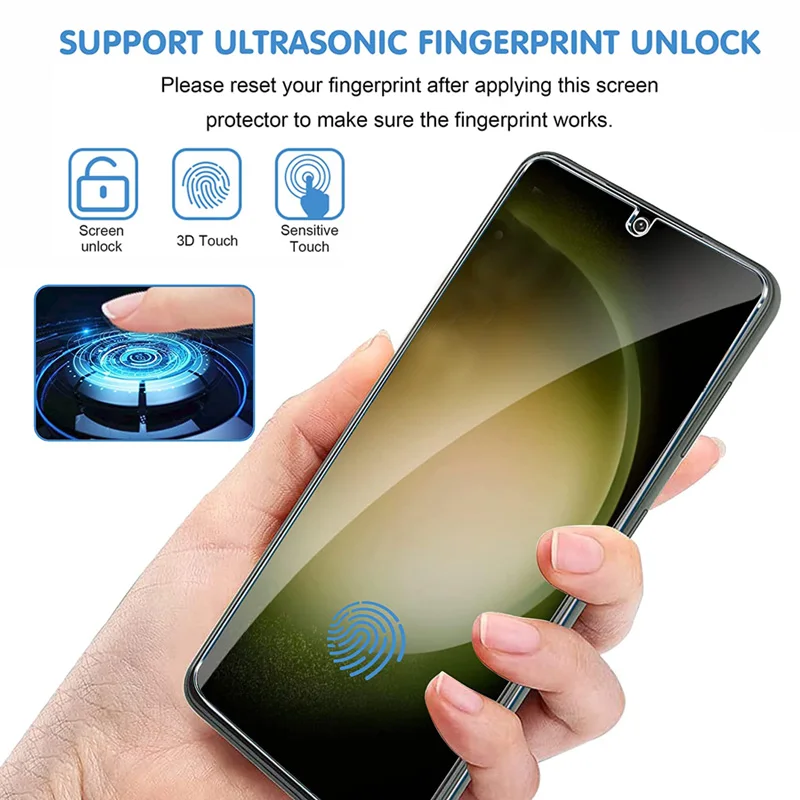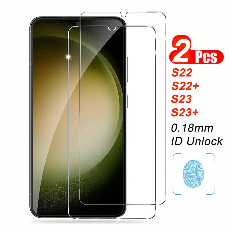 Comprar 2 uds vidrio templado para Samsung Galaxy S24 Ultra S23 S22 S21 Plus S23 + S22 + S21 + 5G Protector de pantalla soporte de identificación de dedo 0,18mm