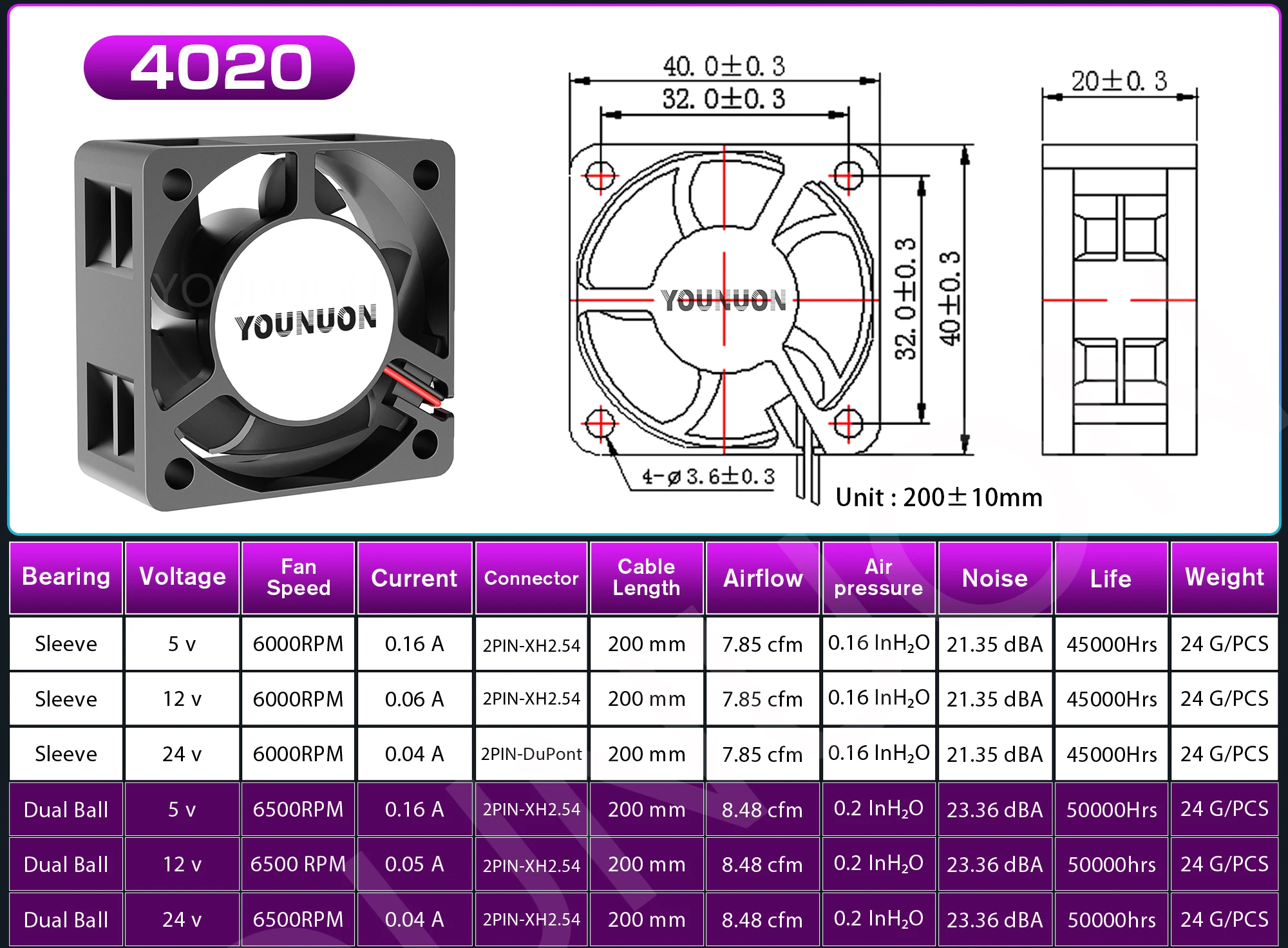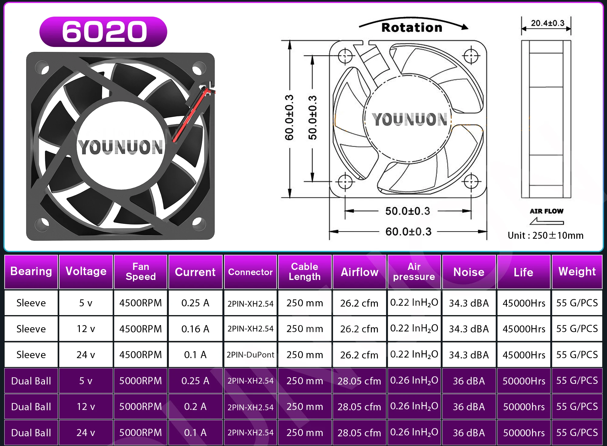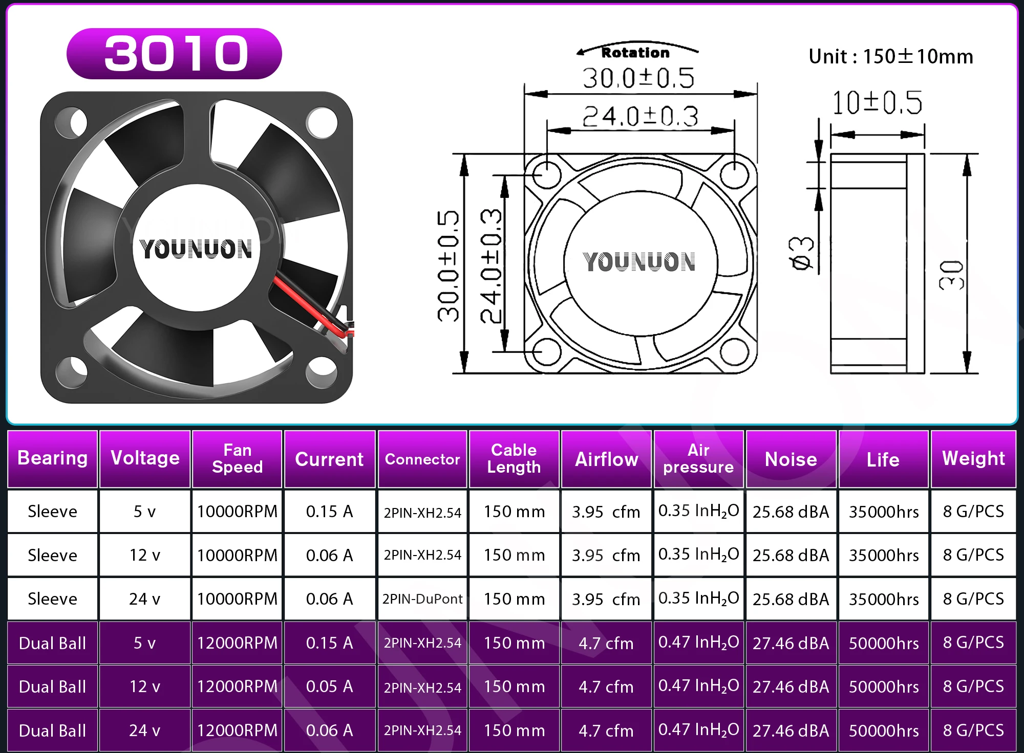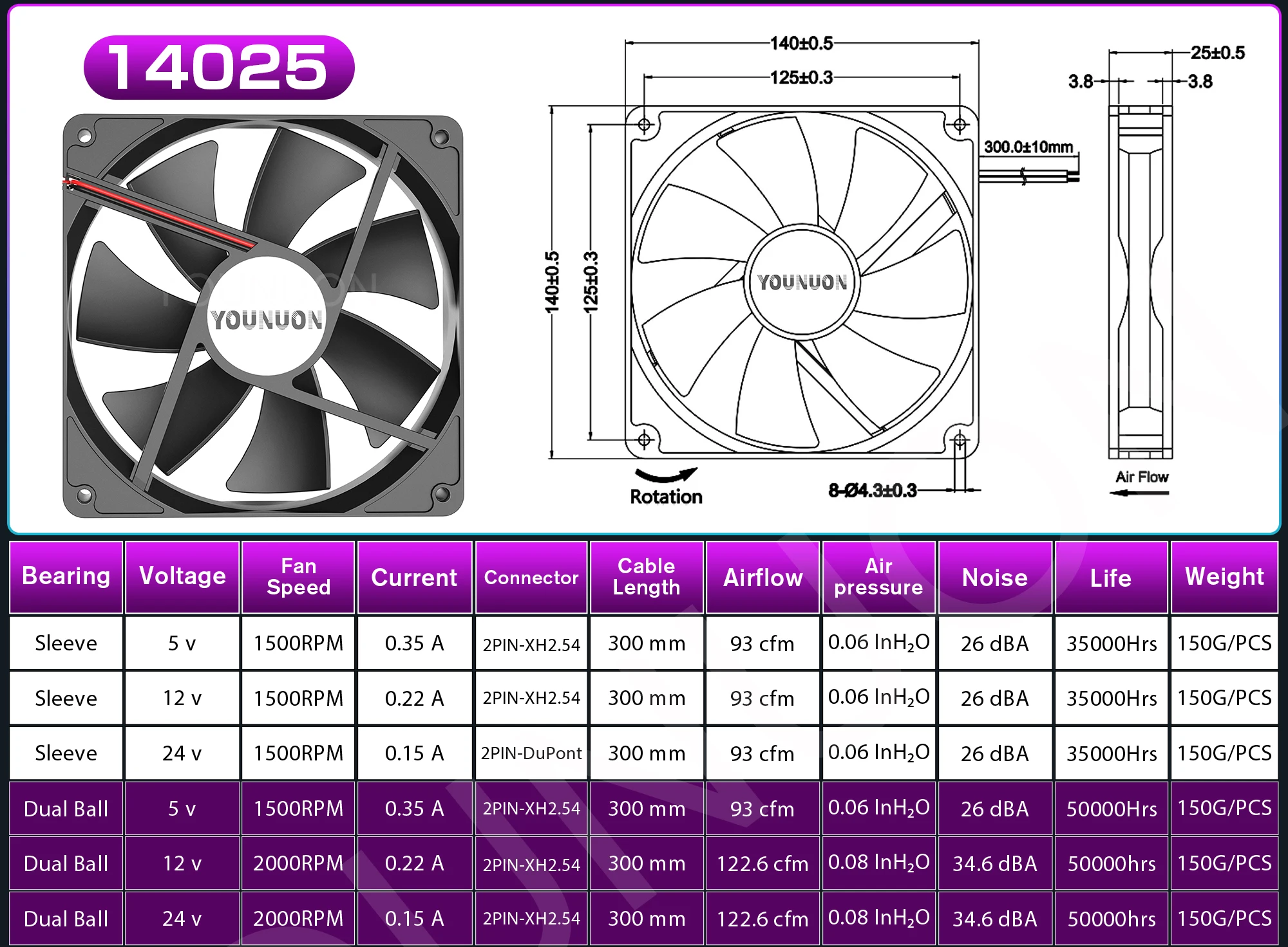 Ventilador CC sin escobillas Younuon Rodamiento de bolas doble buena circulación de aire No demasiado ruidoso.