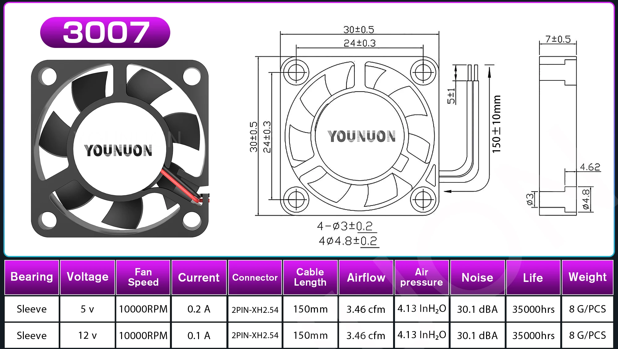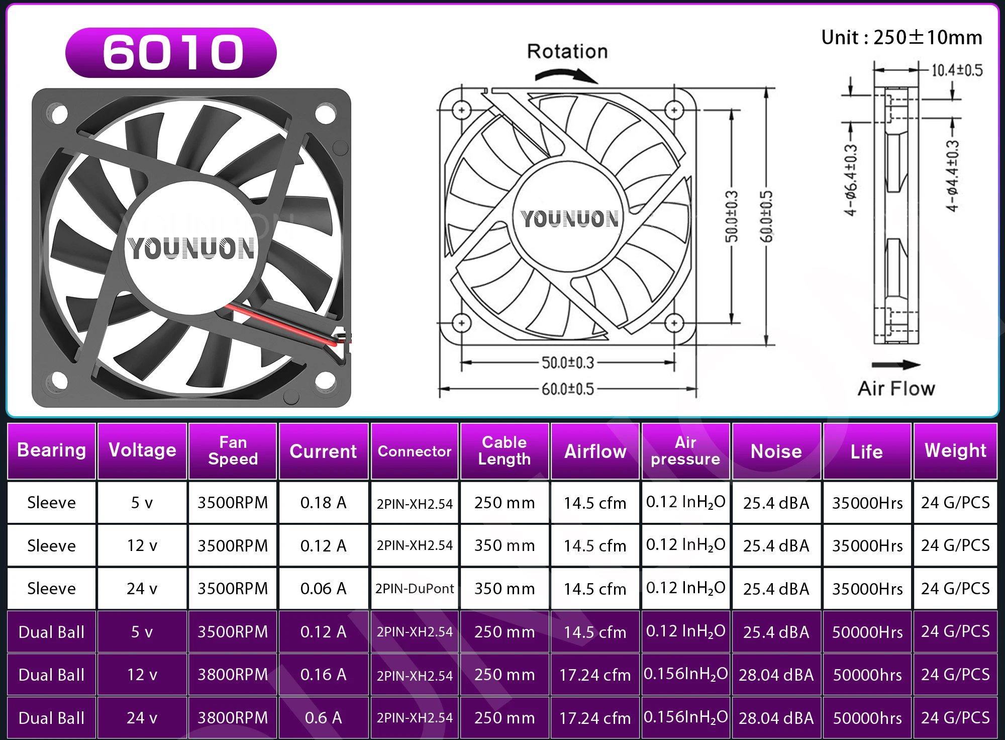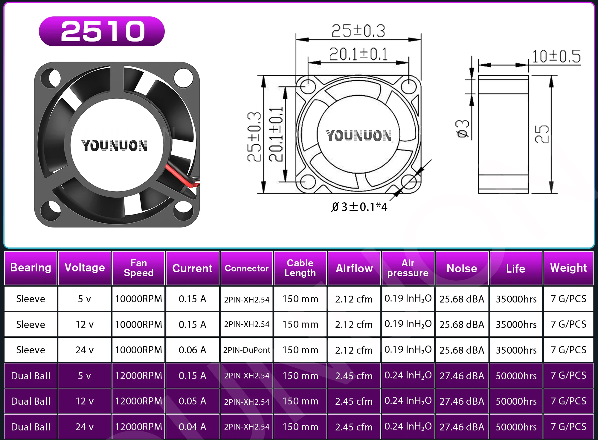 Ventilador CC sin escobillas Younuon Rodamiento de bolas doble buena circulación de aire No demasiado ruidoso.