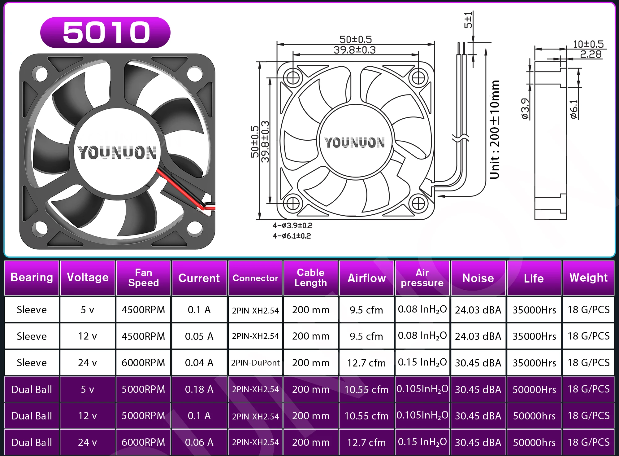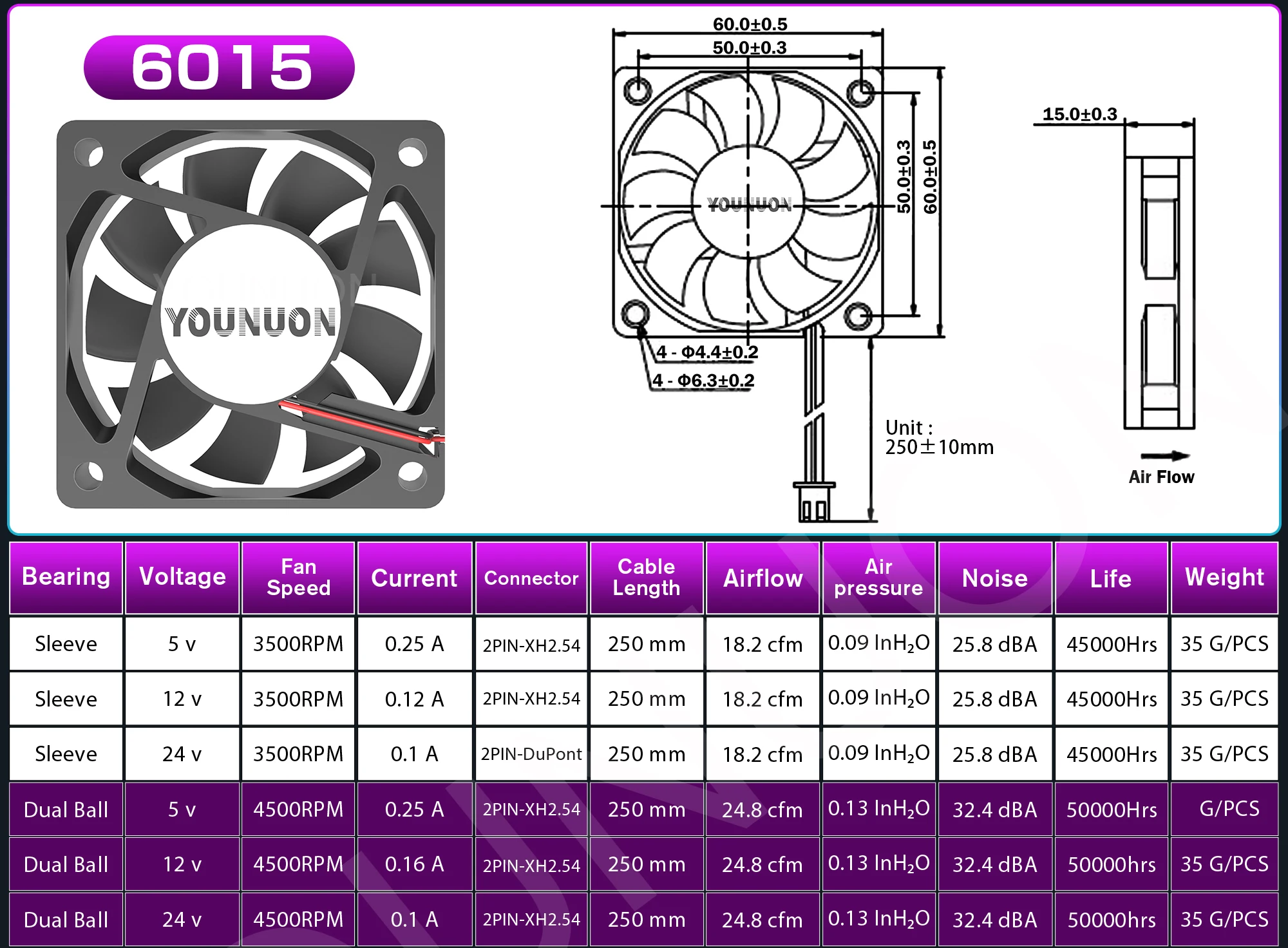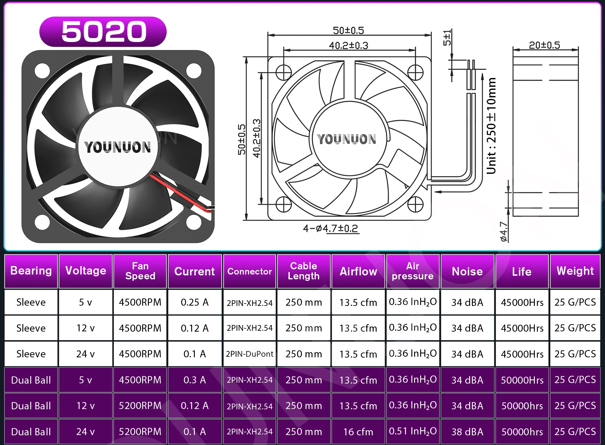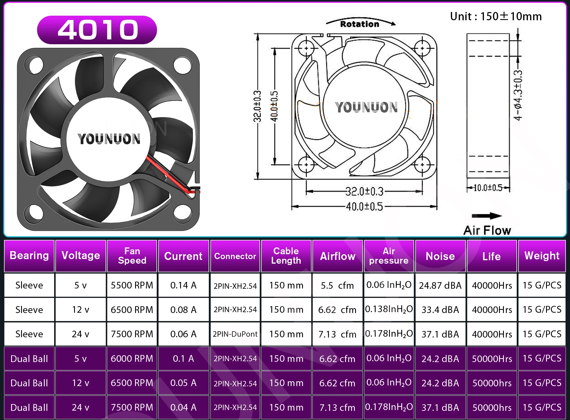 Ventilador CC sin escobillas Younuon Rodamiento de bolas doble buena circulación de aire No demasiado ruidoso.