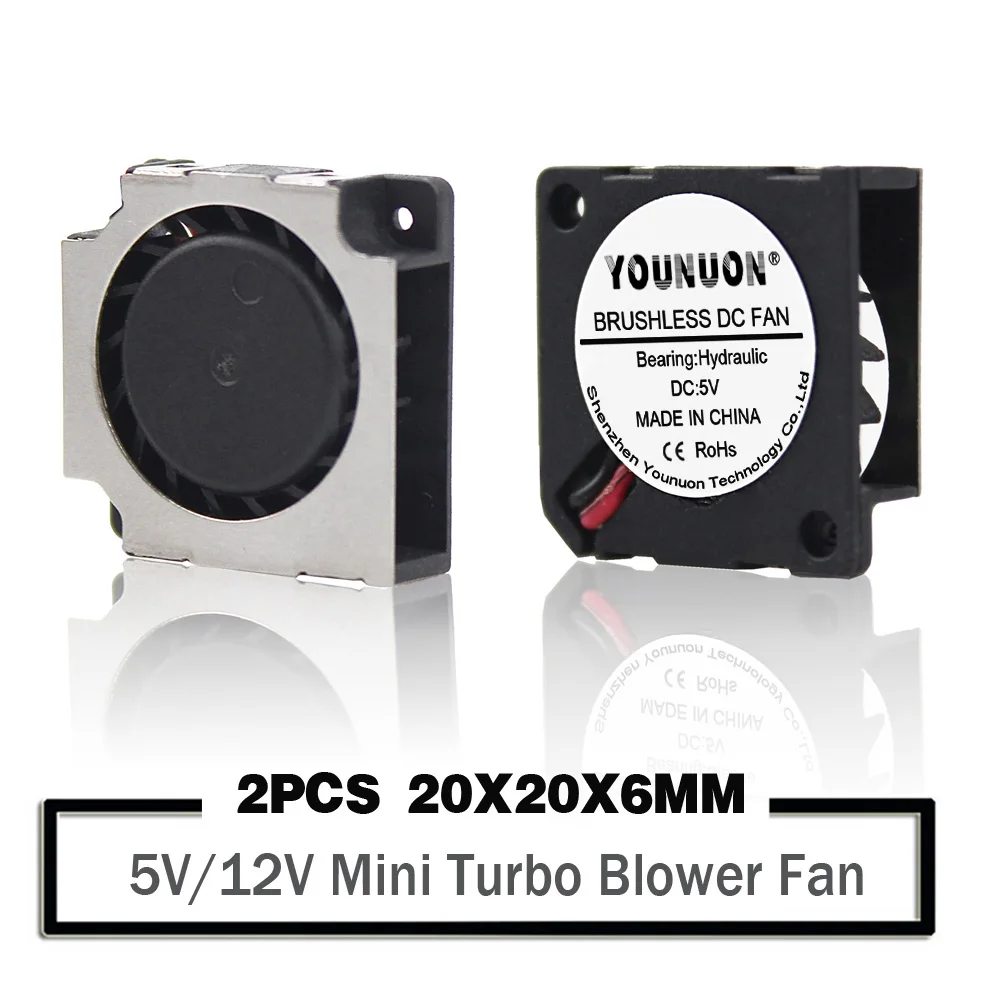 Comprar 2 uds YOUNUON 5V 12V 20x20x6MM ventilador 2cm 20mm Mini ventilador enfriador de refrigeración ventilador 2006 Turbo ventilador de radiador hidráulico