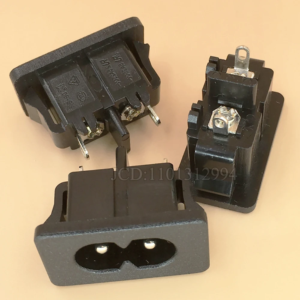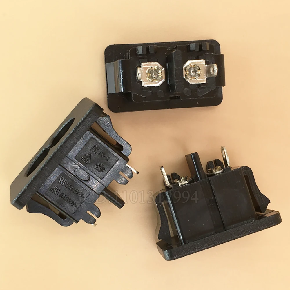 2 unids/lote de alta calidad CA 250 V 2,5 A Iec320 C8 macho 2 pines conector de toma de corriente 2,7 x 1,5 x 2,1 cm