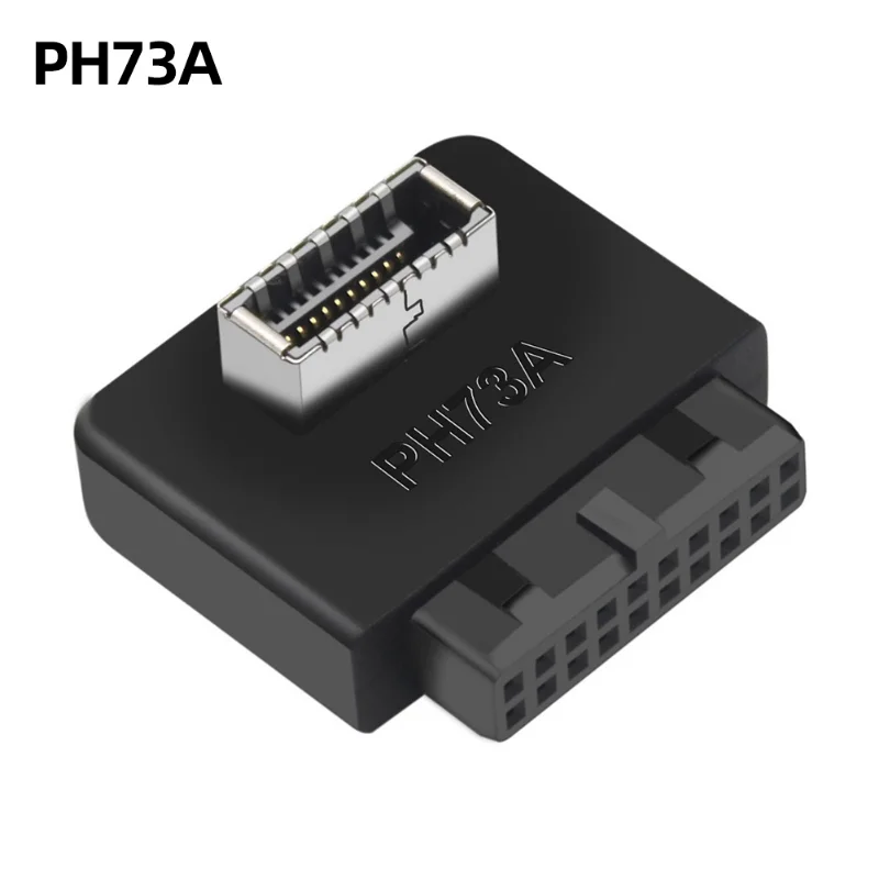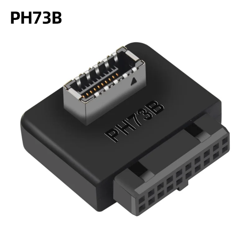 3.Conversión de interfaz: Adaptador de panel frontal interno USB3.0 de 19 pines conectado al adaptador interno USB3.1/3.2 tipo C de 20 pines.