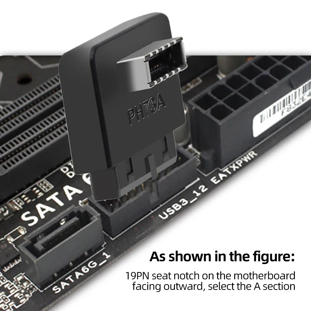 1.Interfaz de soporte: el conector convertidor admite todas las interfaces USB3.0/3.1 (19 pines) de la placa base.
