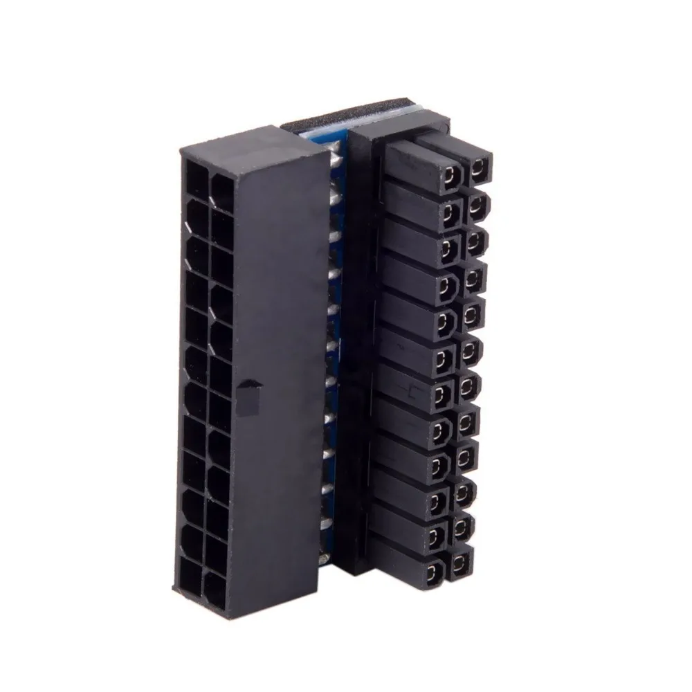 Comprar 2 unids/lote ATX 24 pines 90 grados 24 pines a 24 pines adaptador de enchufe placa base conectores de alimentación Modulares para Cables de fuente de alimentación