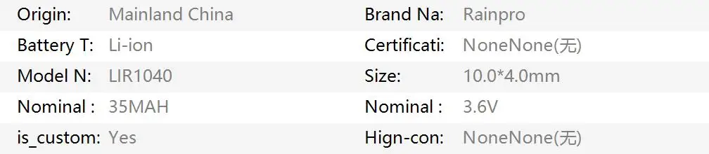 2 unids/lote LIR1040 3,6 V batería de botón de carcasa de acero recargable 35MAH para auriculares Bluetooth TWS