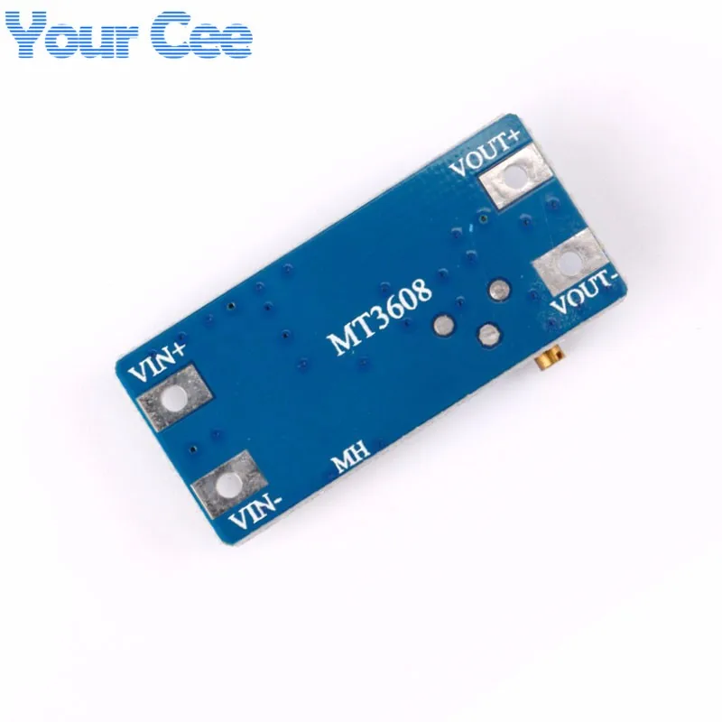 MT3608 2A DC-DC Step Up Power Apply Module Booster Power Module Free Shipping1.Electrical characteristics1).The maximum output current: 2 a2).The input voltage: 2 v ~ 24 v3).The maximum output voltage: 28 v4).Efficiency: 93%2.Mechanical properties1).product size: 36 mm * 17 mm * 14 mm3.Method of useThe module of the IN+ and - after 2~24v, IN adjusting the potentiometer can adjust output voltage, output voltage is greater than the input voltage4.Matters needing attention1).The input voltage should not exceed the maximum input voltage2).The peak current output current is no more than TV university