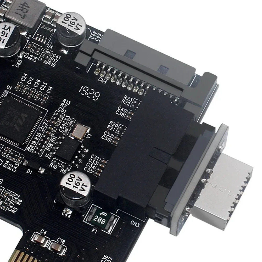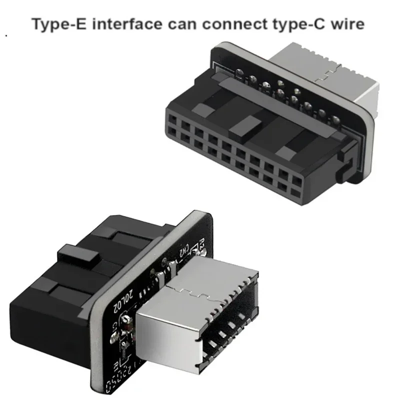 3.Conversión de interfaz: Adaptador de panel frontal interno USB3.0 de 19 pines conectado al adaptador interno USB3.1/3.2 tipo C de 20 pines.