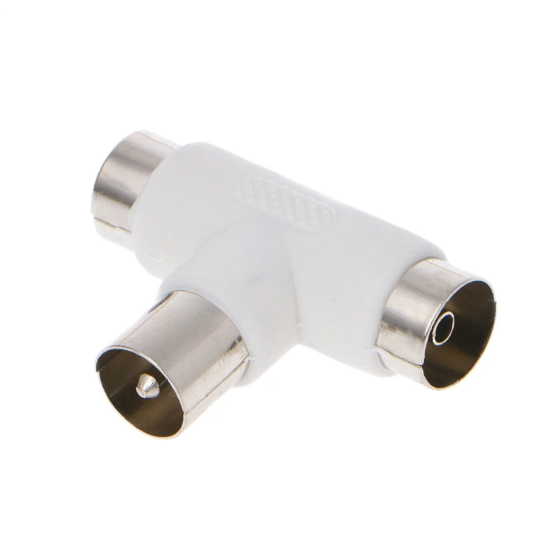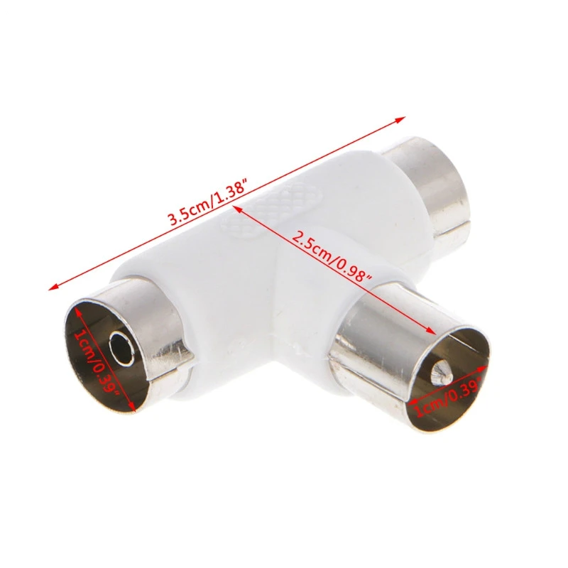 2 vías TV T Splitter Cable coaxial aéreo macho a 2x adaptador de conectores hembra