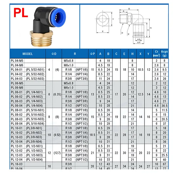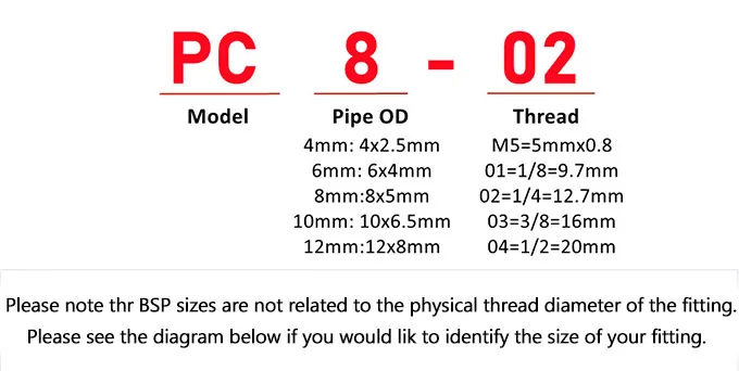 Ajuste para diámetro exterior del tubo: 4 mm 6 mm 8 mm 10 mm 12 mm