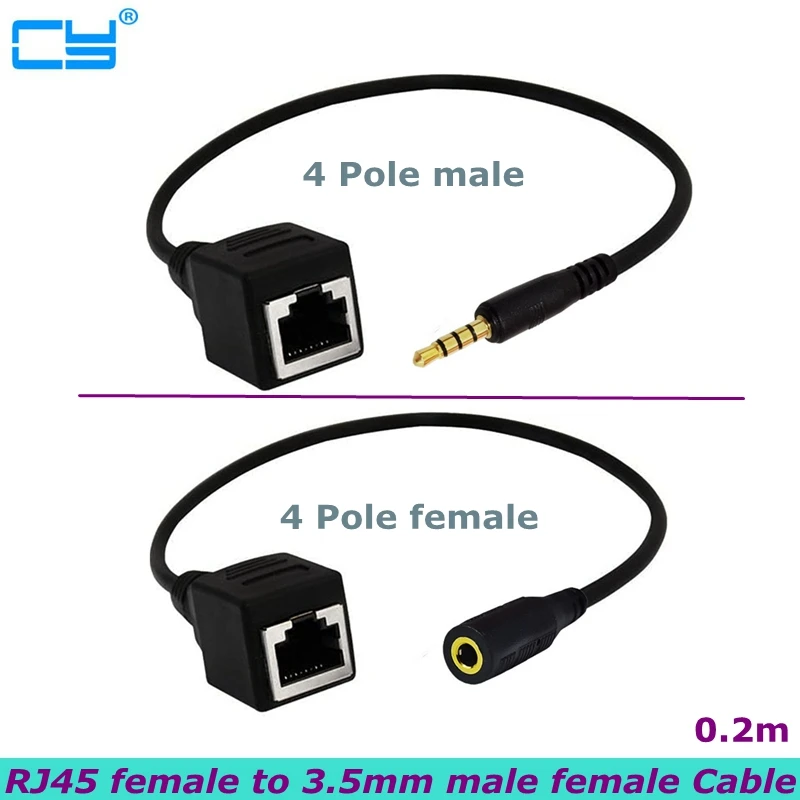 Comprar 20 cm 4 polos DC 3,5 mm macho y hembra Jack TRS Audio a RJ45 hembra Cable adaptador Ethernet se utiliza alrededor de la computadora