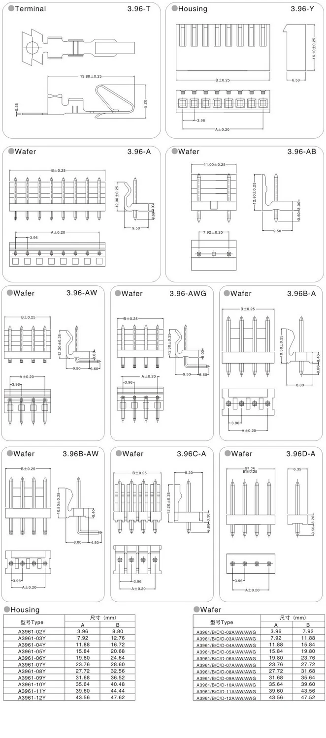 20 juegos/lote CH3.96 conector CH3.96 de 3,96 mm - 2/3/4/5/6 pines20 piezas macho + 20 piezas hembra + terminal 3,96 mm