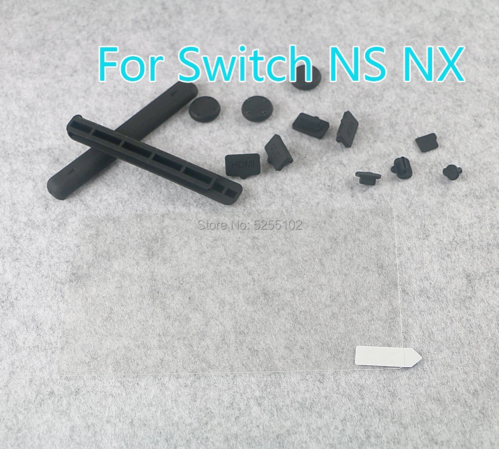 Para NS Switch juegos de tapones antipolvo de silicona y Protector de pantalla de vidrio templado película protectora de acero para consola Switch NS NX