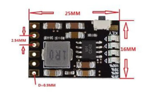 CD42 DC 5V 2.1A Placa de alimentación móvil 4,2 V Descarga de carga Boost Step Up Protección de batería Módulo indicador DIY 3,7 V Litio 18650Parámetro:Voltaje de carga: (recomendado DC5v)