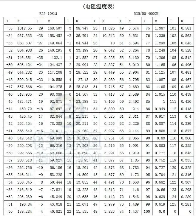 Número de modelo.MF11-103M Estándar del producto Q/320115SHD02-2008 1, Dimensión exterior (Unidad: mm) 2, materiales Material de encapsulación Material de alambre de plomo Color del cuerpo Color de marcado Resina epoxi modificada Alambre de acero estañado Negro Blanco 3, descripción del modelo MF11 103 M Valor de resistencia Tolerancia de resistencia Temperatura compensación Termistor NTC 10×103=10KΩ ±20%. 4, rendimiento eléctrico Requisito de rendimiento de la unidad de condición de prueba de símbolo de artículo 4.1 Potencia cero a 25°C Valor de resistencia R25 Ta=25±0,05°C Potencia de prueba ≤0,1mW KΩ 10±20% 4,2 B valor B25/50 B=[(Ta×Tb)/(Tb-Ta)]× ln(Ra/Rb) K 4000±5% 4.3 Coeficiente de disipaciónδ Tb=50℃±0.1℃ mW/℃ en el aire ≥6 4.4 Tiempo constante τ Tb=50℃±0.1℃ seg ≤30 en aire blando 4.5 Resistencia de aislamiento / 100 V/CC 1 min MΩ ≥100 4.6 Rango de temperatura de funcionamiento / /℃ -55 ~ 125 5, prueba de rendimiento de confiabilidad 6, condiciones de soldadura Al soldar, el lugar de soldadura debe estar al menos a 6 mm de la raíz del cuerpo de la resistencia, la temperatura de soldadura debe ser inferior a 350℃, y el tiempo de soldadura debe ser lo más corto posible. 7, Condiciones de almacenamiento 7.1 Temperatura de almacenamiento: -10℃ ~ 40℃; 7.2 Humedad de almacenamiento: ≤ 75% RH; 7.3 Evite almacenar en un ambiente con gases corrosivos y luz; 7.4 Después de abrir el paquete, se debe volver a sellar y almacenar; Artículo Condiciones y métodos de prueba Requisitos técnicos 5.1 Soldabilidad Inmerso en 235 ± 5℃ plomo en el líquido de estaño, superficie de estaño 6 mm desde el extremo inferior del cuerpo, tiempo de 2 a 3 segundos Soldar en la superficie de la parte sumergida del cable. Recubierto de manera uniforme y suave, con un área de 95% o más 5.2 Resistencia al calor de soldadura Los cables se sumergirán en 265 ± 5℃ líquido de estaño, superficie líquida 6 mm del cuerpo de la resistencia, tiempo 5 ± 1 segundo Sin daños visibles. R25 ΔR/R≤±2%. 5.3 Resistencia al extremo del cable Fuerza de tracción: 10N, tiempo: 10±1 seg. Sin daños visibles, R25 ΔR/R≤±2%. R25 ΔR/R≤±2%. 5.4 Cambio rápido de temperatura -55℃30 min → 25℃5min→125℃30 min → 25℃5min, repetido. →25℃5 min, repetido 5 veces Sin daños visibles, marca clara, R25 ΔR/R≤±2%. R25 ΔR/R≤±3%. 5.5 Temperatura alta: 125℃, tiempo: 16 horas Sin daños visibles, marcado claro, R25 ΔR/R≤±3%. R25 ΔR/R≤±3%. 5.6 Temperatura fría: -55℃, tiempo: 2 horas Temperatura: -55℃, Tiempo: 2 horas Sin daños visibles, marcado claro, R25 ΔR/R≤±3%. R25 ΔR/R≤±3%. 5.7 Baja presión de aire Presión de aire: 40 ± 0,1 Kpa, tiempo: 4 horas Sin daños visibles, R25 ΔR/R≤±3%. R25 ΔR/R≤±3%. 5.8 Temperatura y calor de estado constante Temperatura: 40°C, Humedad: 93%, Tiempo: 48±2 horas. Tiempo: 48 ± 2 horas Sin daños visibles, marcado claro, R25 ΔR/R≤±3%. R25 ΔR/R≤±5%. Tensión soportada ≥ 700/CA 1 min Resistencia de aislamiento ≥ 100MΩ 5.9 Humedad y calor alternados Temperatura: 25~40℃, humedad: 90%. Tiempo: 24 horas Sin daños visibles, marcado claro R25 ΔR/R≤±3%. Tensión soportada ≥ 700/CA 1 min Resistencia de aislamiento ≥ 100MΩ 5.10 Temperatura de categoría superior Cero consumo de energía Durabilidad Temperatura: 125℃±2 Tiempo: 1000±24 horas Sin daños visibles, marcado claro R25 ΔR/R ≤±5% 5.11 Vibración Rango de frecuencia: 10 ~ 500 HZ, Amplitud: 0,75 mm o 100m/S2, tiempo 2 horas Sin daños visibles R25 ΔR/R ≤±3%. 5.12 Crash Aceleración: 250m/S2, duración del pulso: 6mS, número de colisiones: 4000 Sin daños visibles, R25 ΔR/R≤±3%. R25 ΔR/R ≤±3%