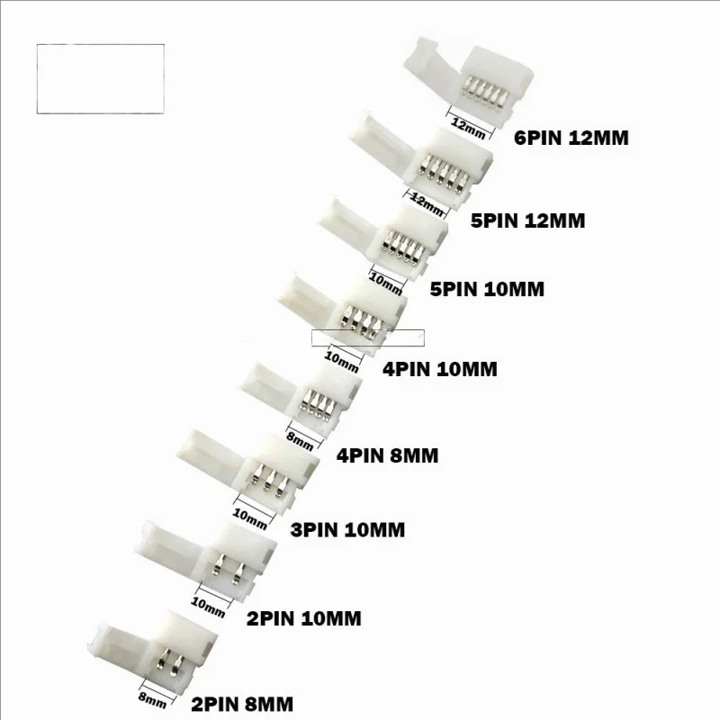 20 piezas 2 pines/3 pines/4 pines/5 pines/6 pines placa desnuda tira de LED suave sin soldadura Clip de conexión 8mm 10mm 2mm clip en el medio
