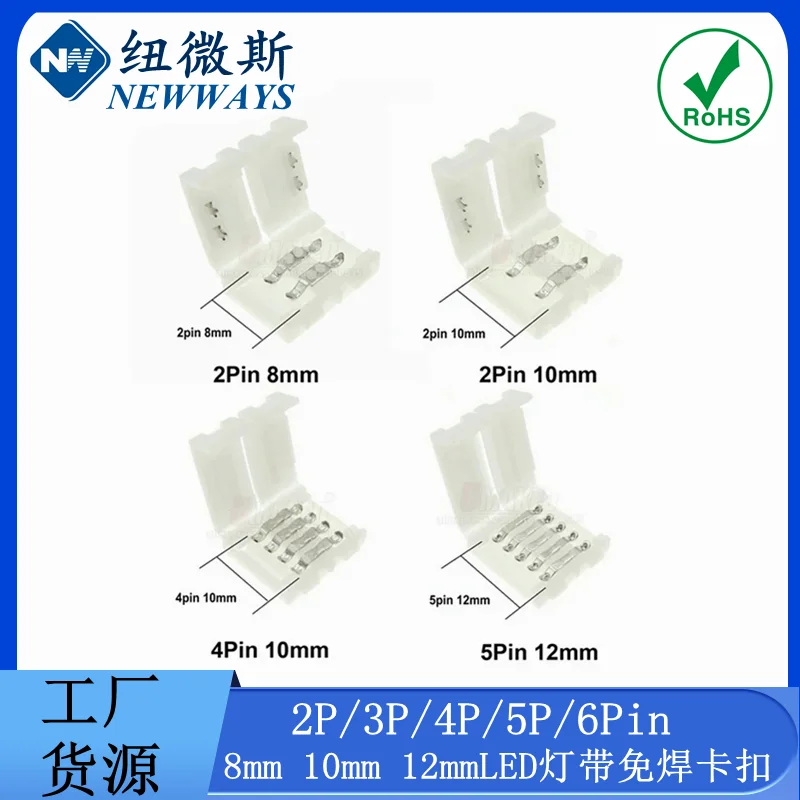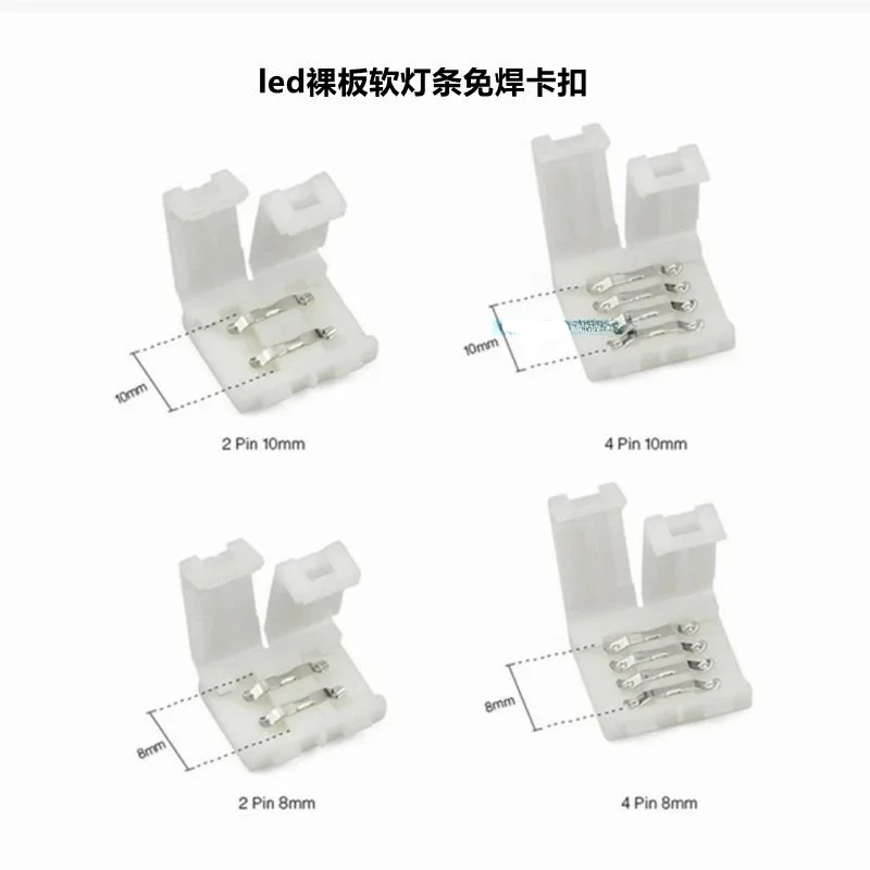 Comprar 20 piezas 2 pines/3 pines/4 pines/5 pines/6 pines tablero desnudo tira de LED suave sin Clip de conexión de soldadura 8mm 10mm 2mm Clip en el medio