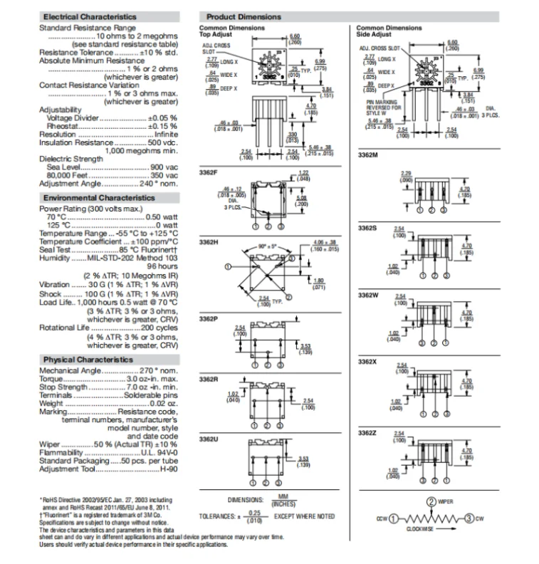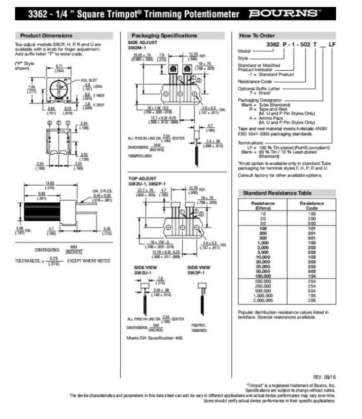 20 piezas/5 uds 3362W 3362 potenciómetro recortador Trimpot de resistencia ajustable de precisión 100R 200R 500R 1K 2K 5K 10K 20K 100K 200K Ohm