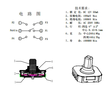 20 piezas/5 uds interruptor de cinco vías 7X7X5 SMD 6 pines para teclas de navegación móviles interruptor móvil a interruptor multidireccional 7,5*7,5*5mm