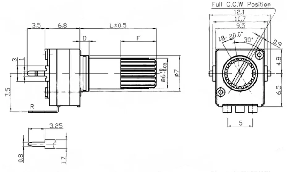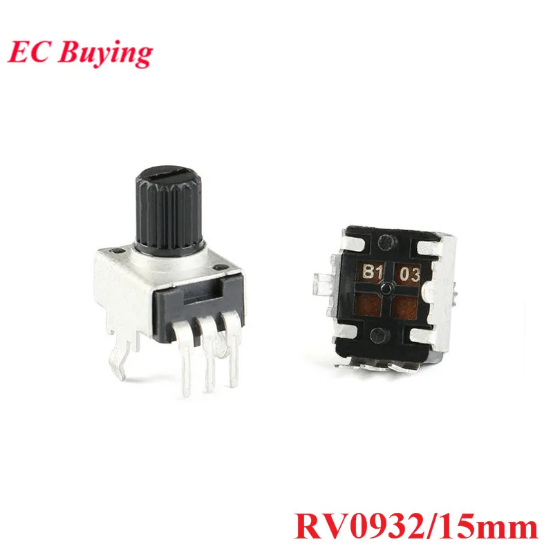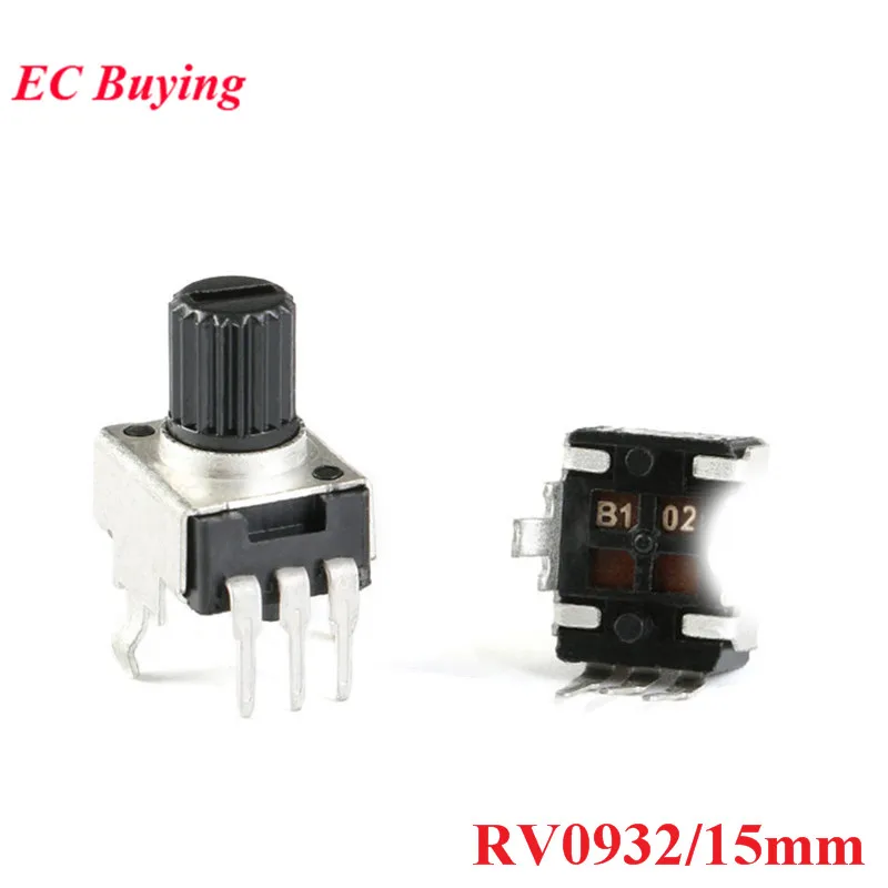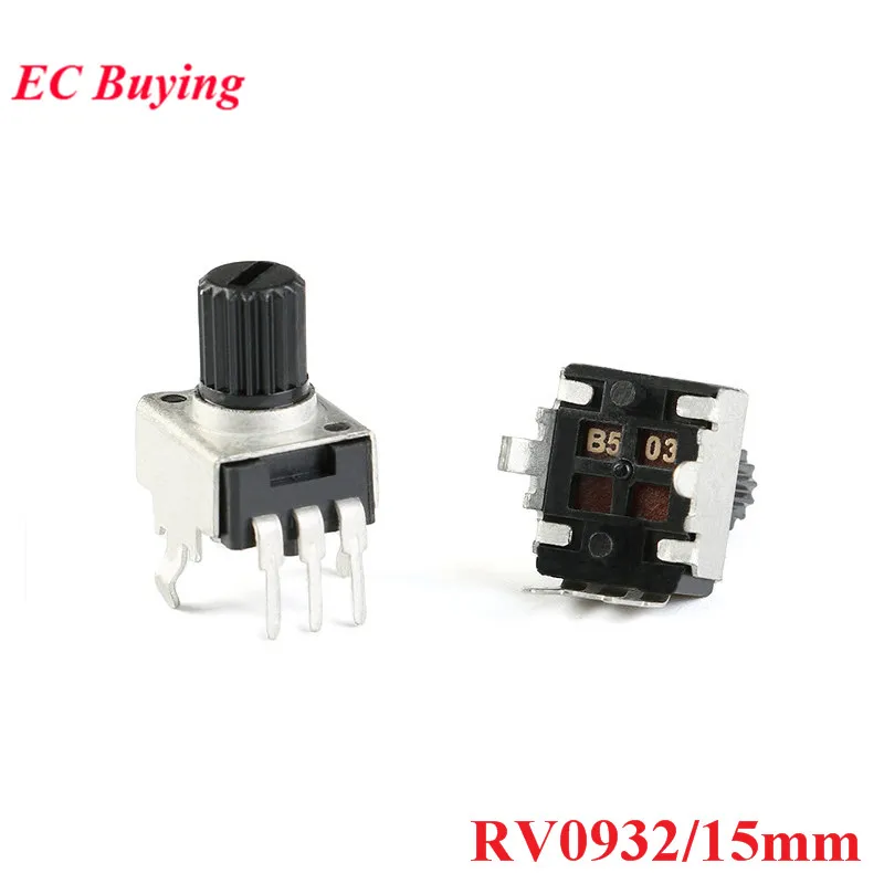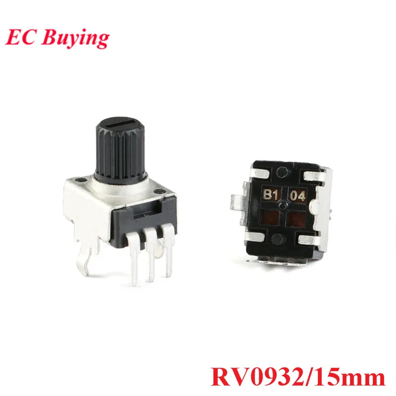 Comprar 20 piezas/5 unidades RV09 RV0932 Vertical 1K/102 5K/502 10K/103 50K/503 100K/104 WH09 0932 potenciómetro mango ajustable eje redondo de 15MM