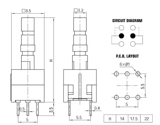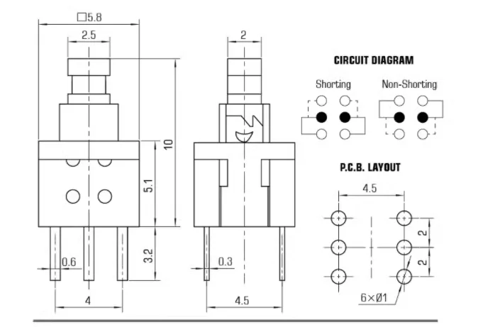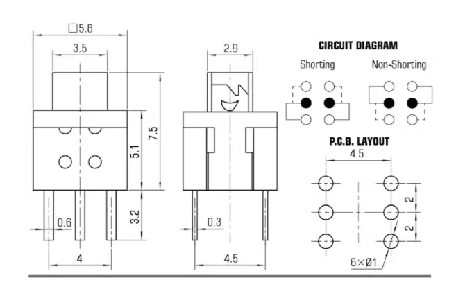 Comprar 20 piezas 5,8*5,8 7*7 8*8 8,5*8,5mm Kit de microinterruptor de alimentación táctil autoblocante interruptores de botón de 6 pines