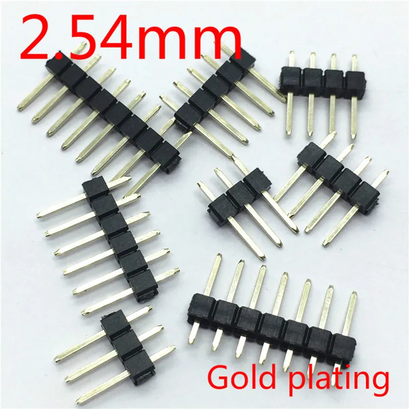 Comprar 20 piezas chapado en oro 2,54mm cabezal de Pin macho de una sola fila 1x2P/3/4/5/6/8/10P/12/20 conector de tira de 40 pines