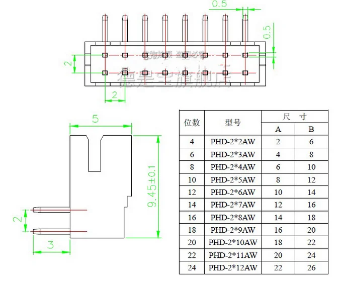 Comprar 20 piezas-clavija recta de doble fila, Conector de paso de 2,0mm, 2x3/4/5/6/8/10P, PHD 2,0