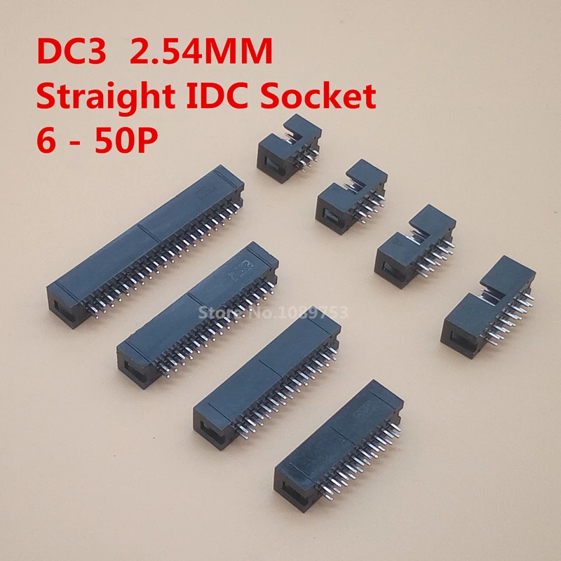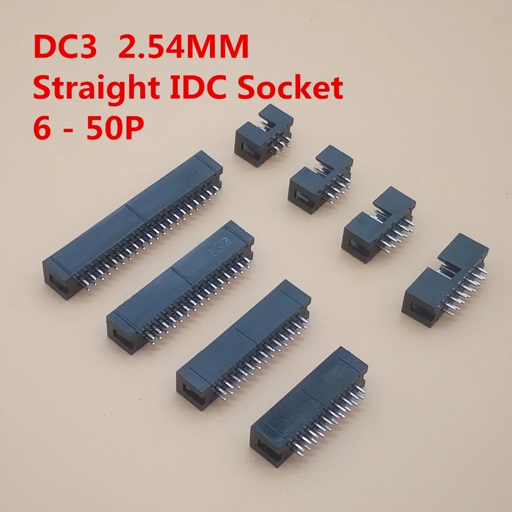 Comprar 20 piezas conector de caja IDC DC3 de doble fila 6/8/10/12/14/16/18/20/24/26/30-50P conector de enchufe JTAG negro paso de 2,54mm