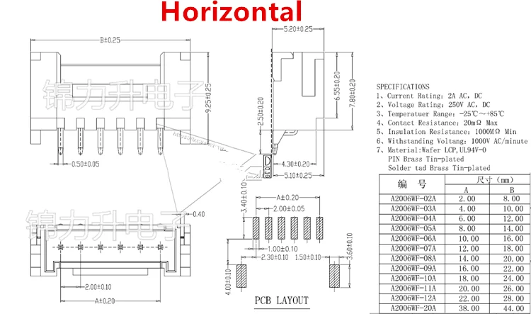 20 piezas HY2.0 conector de parche Horizontal y Vertical 2,0 mm paso 2P 3P 4P 6P 7P 8P 9P 10 pines conector de enchufe