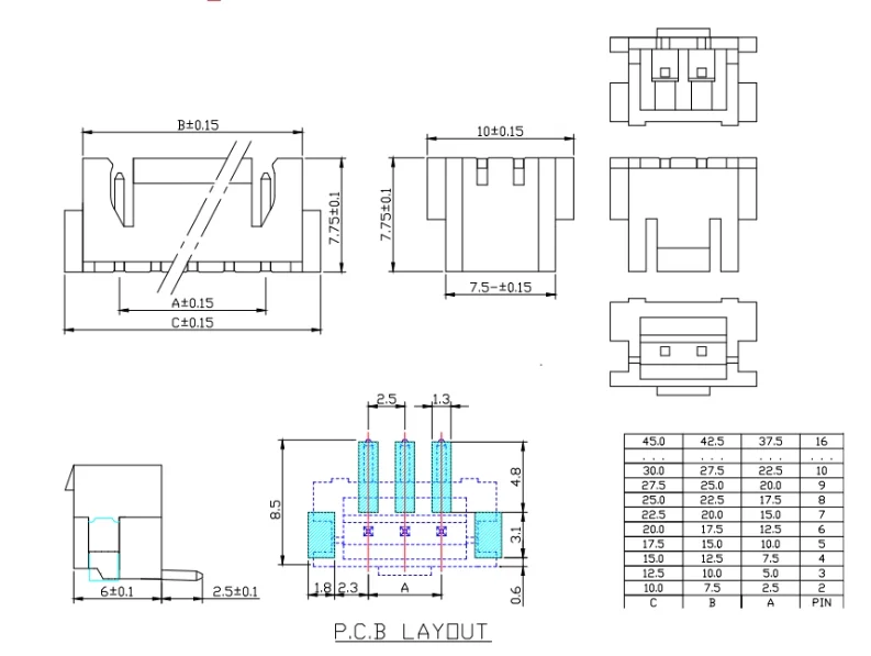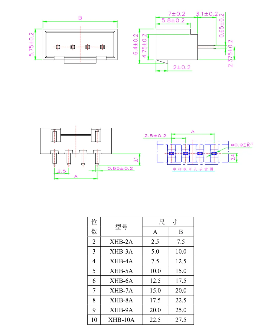 SMD horizontal XHB2.54