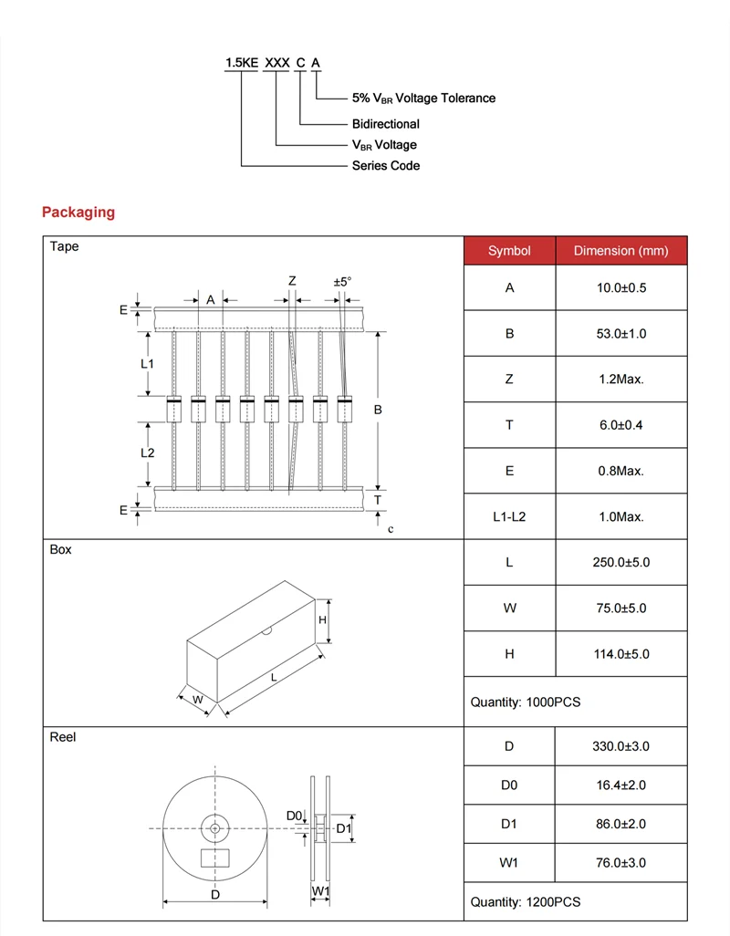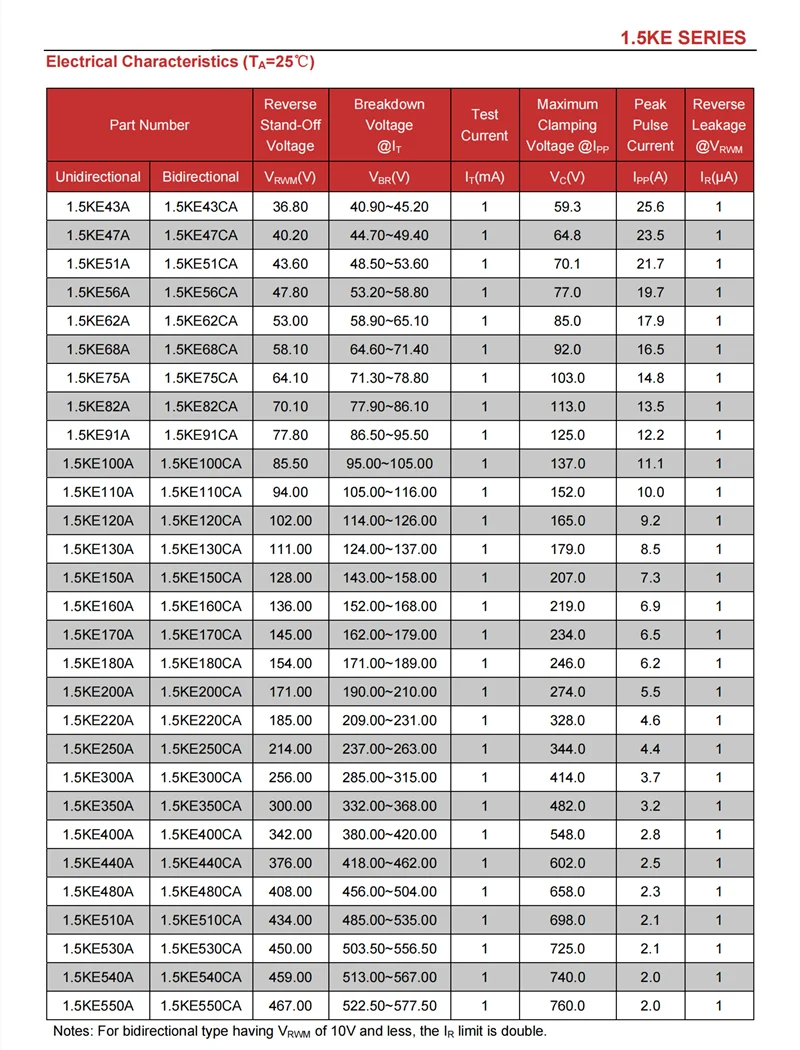 20 piezas diodo TVS de 1500W 1.5KE100CA 1.5KE110CA 1.5KE120CA 1.5KE130CA 1.5KE150CA 1.5KE160CA 1.5KE170CA 100V 110V 120V 130V 150V 160V