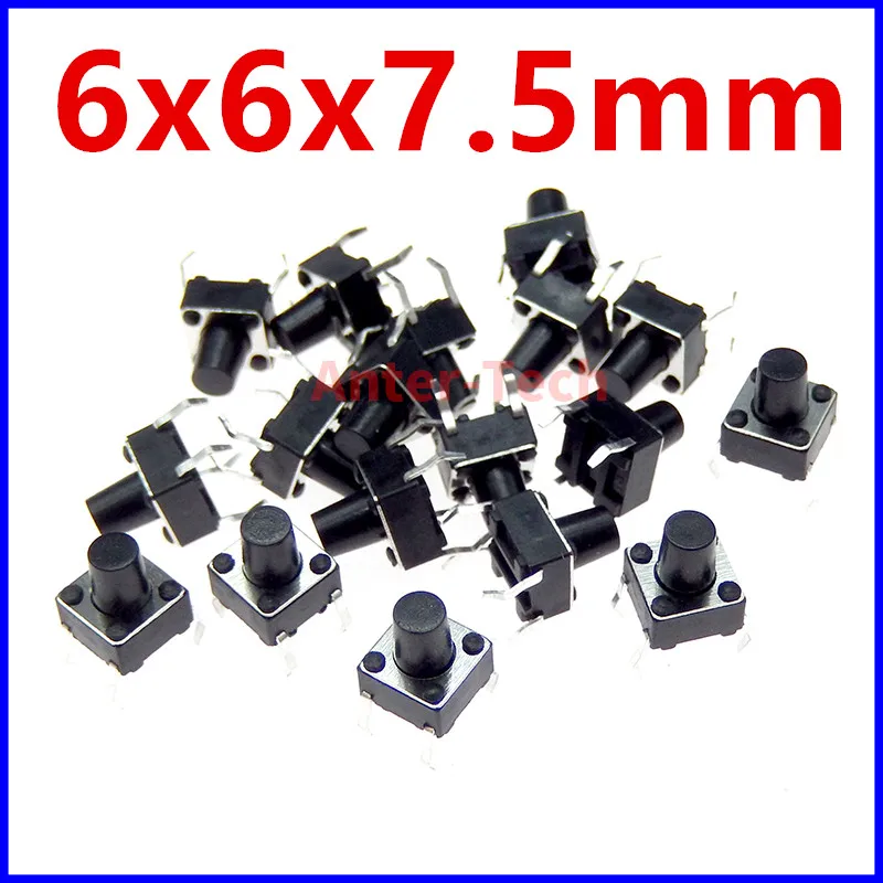 Comprar 20 piezas DIP 6x6 6X6X7.5 6*6*7,5 MM interruptor de botón luz táctil interruptor de alimentación 4 pines