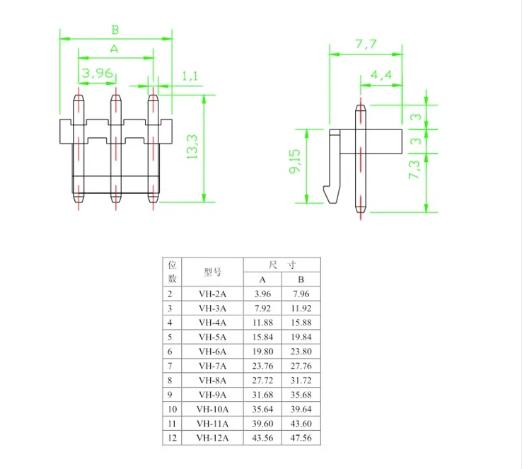 Comprar 20 piezas-enchufe recto VH3.96, cabezal de Pin recto de 3,96mm, 2/3/4/5/6/7/8P