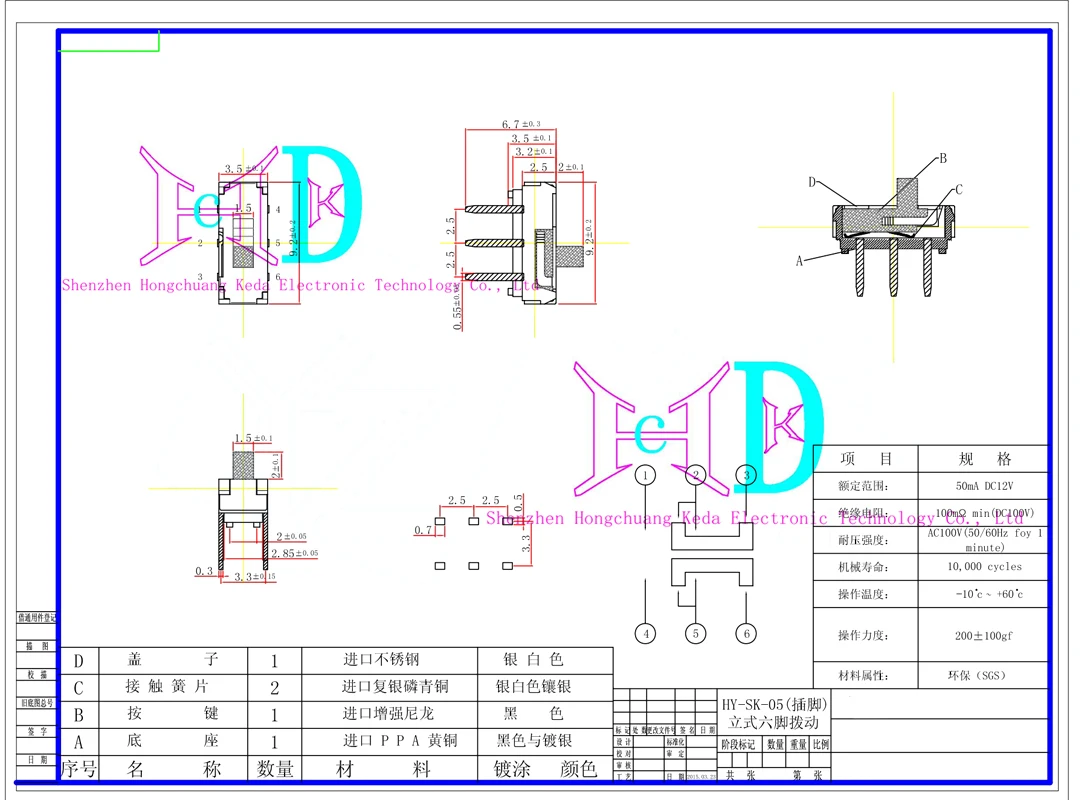 20 piezas-Interruptor de palanca de 2 velocidades, 6 pines, vertical, pequeño, 2,0/3,0/4,0mm