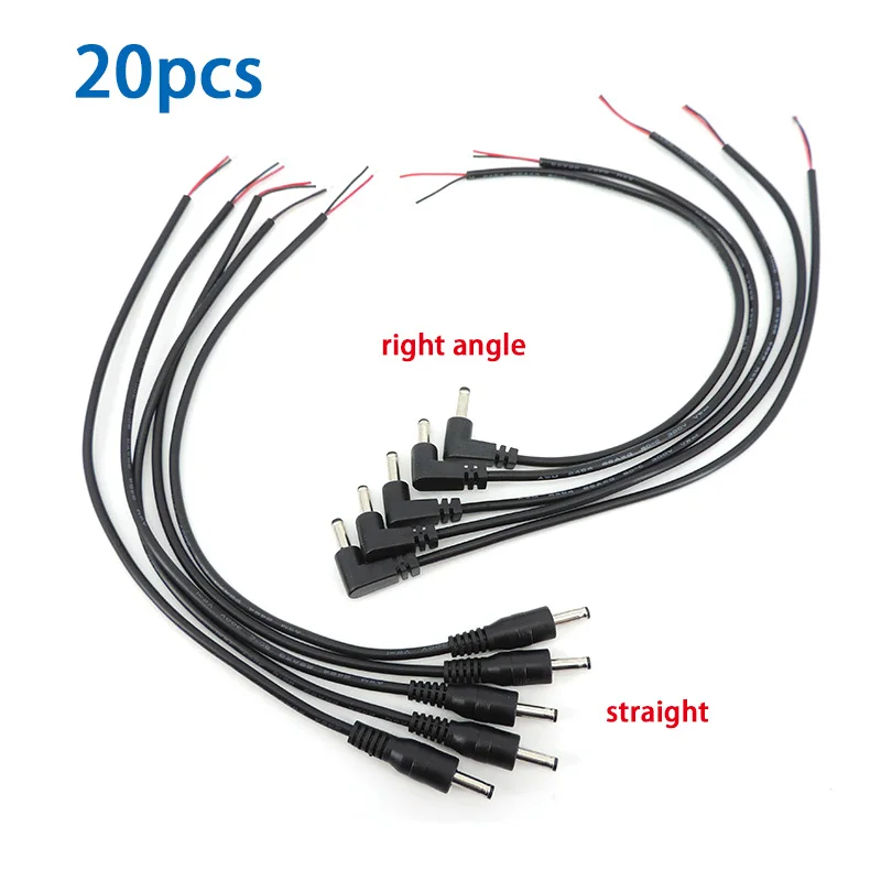 20 piezas 0,3 M 2 núcleos DC macho 3,5 mm x 1,35 mm vertical ángulo recto conector de fuente de alimentación cable enchufe estañado reparación de bricolaje