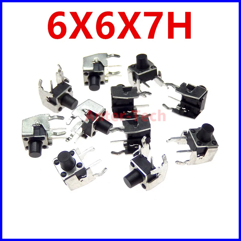 Comprar 20 piezas-microinterruptor de reinicio automático, 6x6x7mm, 4 pines, 90 grados, inserto lateral con soporte, 6x6x7mm